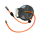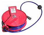 Катушка воздушная. Полиуретановый шланг давление до 300 psi. Корпус из АБС-пластика, ударопрочный. Направляющая катушка поворачивается на 180 градусов, что значительно расширяет площадь работ. Может быть зафиксирована под углом 45, 90, 135 градусов. Длина шланга 10 м. Диаметр шланга: 8 мм, наружный диаметр: 12 мм.