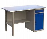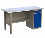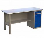 Верстак однотумбовый поставляется в разобранном виде. Нагрузка на столешницу до 600 кг. Стандартный цвет: корпус - серый глянец RAL 7030, ящики и двери тумб - синий RAL 5017. Размеры:855x1400x700 мм. Вес: 76 кг.