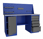 Двухтумбовый. Допустимая нагрузка на столешницу 1000 кг. Опорные элементы выполнены сварными из холоднокатаной стали. Для выполнения сборочных, ремонтных, слесарных, монтажных и других видов работ на производстве, в сервисных центрах, мастерских, гаражах, а также для обучения технологии в учебных заведениях. Комплектуется полкой-стенкой, расположенной под столешницей для удобного размещения габаритного инструмента и оснастки. Размеры верстака: 855x1596x696 мм. Вес: 103 кг. Поставляется в 4 комплектациях на выбор.
