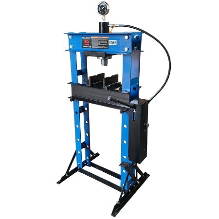 Усилие 10 тонн. Настольный. Ручной. Для запрессовки подшипников, деталей машин, втулок и т.п. в автосервисе, мастерских по ремонту лодочных моторов, велосипедов и т.п. Гидроцилиндр с пуансоном имеет возможность перемещения по всей ширине рамы. Контроль усилия – визуально по шкале манометра. Интервал пуансона 135 мм. Рабочее окно: 400 x 350 мм.