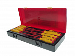 Набор отверток в прочном презентабельном боксе (7 предметов). В комплекте: электромонажный нож изолированный, 3 шт. - отвертки шлицевые: 5.5 х 125 мм, 4.0 х 100 мм, 3.0 х 75 мм, 3 шт. - отвертки Philips: РН2 х 6.0 х 100 мм, РН1 х 4.5 х 100 мм, РН0 х 3.0 х 75 мм.