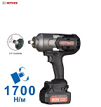 Гарантия 12 мес. Ударный. Профессиональный. До 1700Нм. 3 скорости. Реверс. Квадрат 1/2". Белый светодиод подсветки. Индикатор заряда. 20В. (2х4Ач аккумулятора РАЗМЕР БОЛЬШЕ — ПРОСЛУЖИТ ДОЛЬШЕ!), кейс и зарядное устройство в комплекте. Бесщеточный двигатель. Антивибрационная ручка. Для слесарных работ и шиномонтажа.