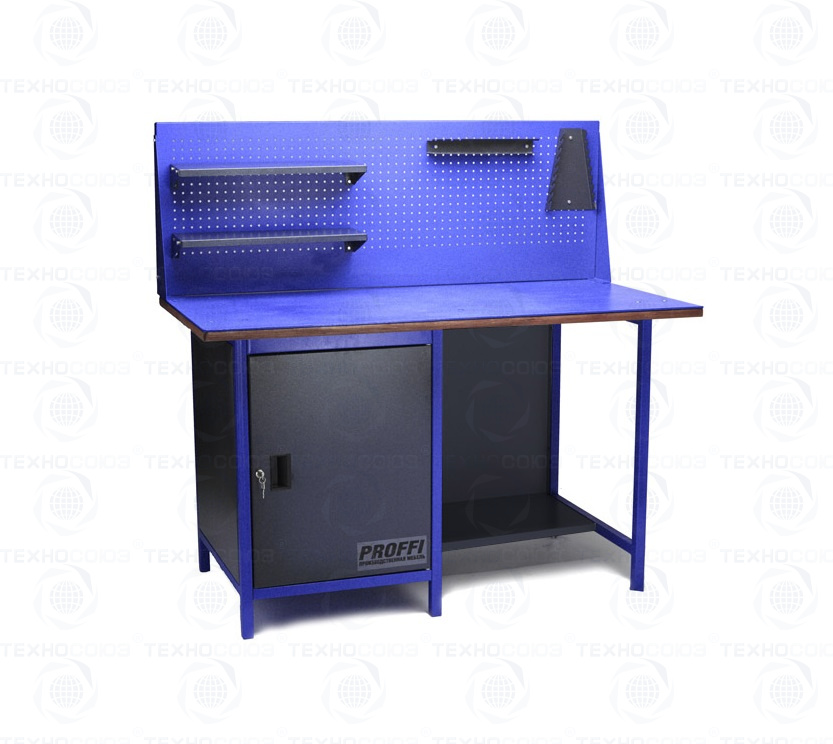 Верстак металлический (однотумбовый), PROFFI-2МД ОПС1Т. Размеры: 1400x830x700 мм, 1 тумба с 1 полкой ящиками и дверью, замок, оцинк. столешница.сталь (6 мм) и фанера (24 мм). Нагрузка на столешницу 1 000 кг.
