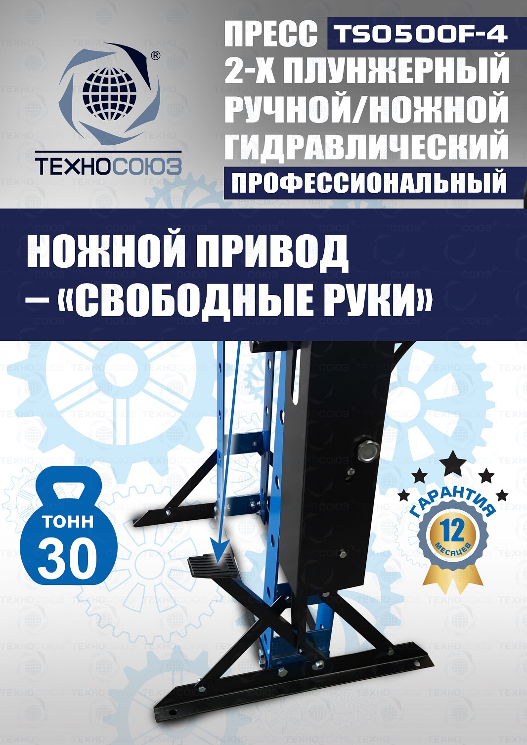 TS0500F-4 Пресс гидравлический ручной/ножной, 30 тонн