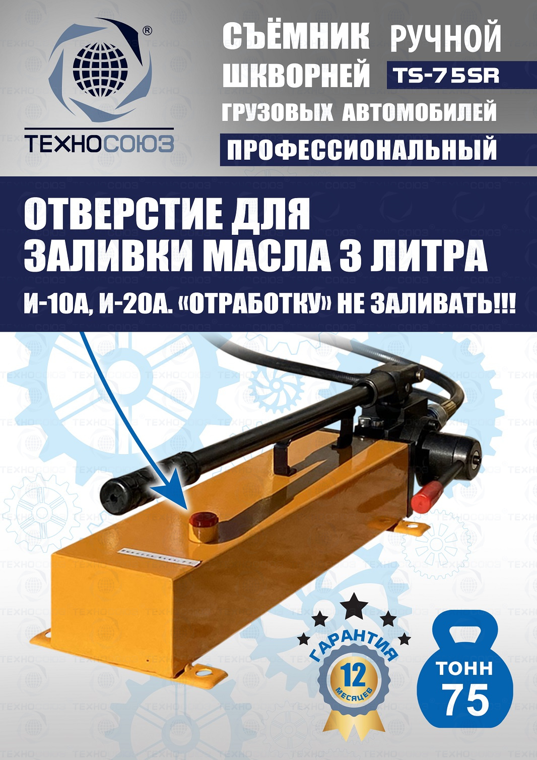 Сокращает время ремонта. Можно использовать при выездных работах. Позволяет работать под разными углами. Для выпрессовки шкворней из поворотной цапфы погрузчиков, тракторов, строительной техники, коммерческих и грузовых авто отечественного и импортного производства: MAN, MERCEDES, SCANIA, VOLVO, Корейские и Китайские авто. Можно использовать при выездных работах. Ручной гидравлический привод. Рабочее окно 400x320 мм. Усилие 75 тонн.